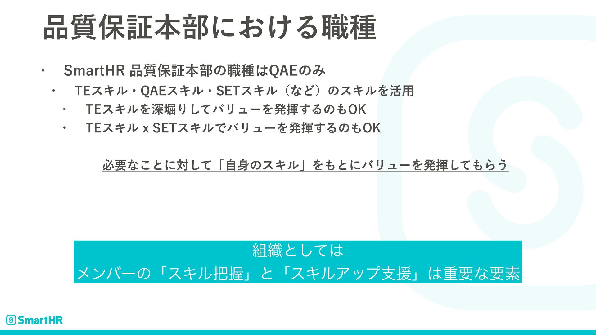 ࣭อূຊ෦ʹ͓͚Δ৬छ w 4NBSU)3࣭อূຊ෦ͷ৬छ2"&ͷΈ w 5&εΩϧɾ2"&εΩϧɾ4&5εΩϧʢͳͲʣͷεΩϧΛ׆༻ w 5&εΩϧΛਂງΓͯ͠όϦϡʔΛൃش͢Δͷ0, w 5&εΩϧY4&5εΩϧͰόϦϡʔΛൃش͢Δͷ0, ඞཁͳ͜ͱʹରͯ͠ʮࣗͷεΩϧʯΛͱʹόϦϡʔΛൃشͯ͠Β͏