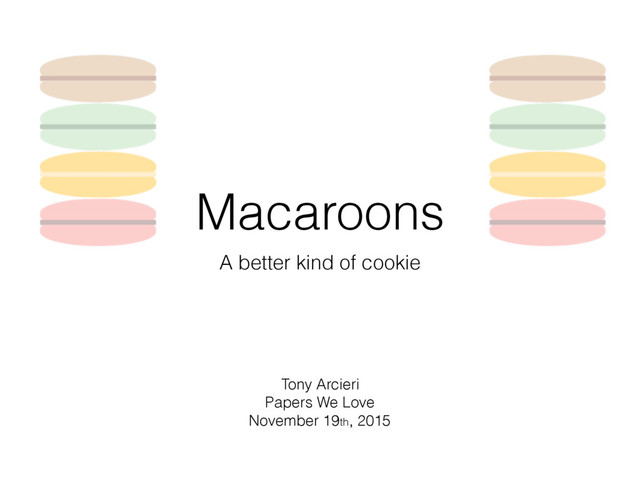[email protected] ´ Ulfar Erlingsson, Ankur Taly, Michael Vrable, and Mark Lentczner Google Inc {ulfar,ataly,mvrable,mzero}@google.com Abstract —Controlled sharing is fundamental to distributed systems; yet, on the Web, and in the Cloud, sharing is still based on rudimentary mechanisms. More flexible, decentralized cryptographic authorization credentials have not been adopted, largely because their mechanisms have not been incrementally deployable, simple enough, or efficient enough to implement across the relevant systems and devices. This paper introduces macaroons : flexible authorization cre- dentials for Cloud services that support decentralized delegation between principals. Macaroons are based on a construction that uses nested, chained MACs (e.g., HMACs [43]) in a manner that is highly efficient, easy to deploy, and widely applicable. Although macaroons are bearer credentials, like Web cookies, macaroons embed caveats that attenuate and contextually confine when, where, by who, and for what purpose a target service should authorize requests. This paper describes macaroons and motivates their design, compares them to other credential systems, such as cookies and SPKI/SDSI [14], evaluates and measures a prototype implementation, and discusses practical security and application considerations. In particular, it is considered how macaroons can enable more fine-grained authorization in the Cloud, e.g., by strengthening mechanisms like OAuth2 [17], and a formalization of macaroons is given in authorization logic. I. INTRODUCTION Macaroons are authorization credentials that provide flexible support for controlled sharing in decentralized, distributed systems. Macaroons are widely applicable since they are a form of bearer credentials—much like commonly-used cookies on the Web—and have an efficient construction based on keyed cryptographic message digests [43]. Macaroons are designed for the Web, mobile devices, and the related distributed systems collectively known as the Cloud. Such modern software is often constructed as a decentralized graph of collaborative, loosely-coupled services. Those ser- vices comprise different protection domains, communication channels, execution environments, and implementations—with each service reflecting the characteristics and interests of the different underlying stakeholders. Thus, security and access control are of critical concern, especially as the Cloud is commonly used for sharing private, sensitive end-user data, e.g., through email or social networking applications. Unfortunately, controlled sharing in the Cloud is founded on basic, rudimentary authorization mechanisms, such HTTP cookies that carry pure bearer tokens [21, 54]. Thus, today, it is practically impossible for the owner of a private, sensitive image stored at one Cloud service to email a URL link to that image, safely—given the many opportunities for impersonation and eavesdropping—such that the image can be seen only by logged-in members of a group of users that the owner maintains at another, unrelated Cloud service. Currently, this use case is possible only if the image, access group, and users are all at a single service, or if two Cloud services keep special, pairwise ties using custom, proprietary mechanisms (e.g., as done by Dropbox and Facebook [55]). Of course, the ubiquitous use of bearer tokens is due to advantages—such as simplicity and ease of adoption—that cannot be overlooked. For example, bearer tokens can easily authorize access for unregistered users (e.g., to the shopping cart of a first-time visitor to a Cloud service) or from unnamed, transient contexts (e.g., from a pop-up window shown during private, incognito Web browsing). Such dynamic and short- lived principals arise naturally in distributed systems, like the Cloud and the “Grid” [47]. In comparison, most authorization mechanisms based on public-key certificates are not directly suited to the Cloud, since they are based on more expensive primitives that can be difficult to deploy, and define long-lived, linkable identities, which may impact end-user privacy [21]. Even so, the inflexibility of current Cloud authorization is quite unsatisfactory. Most users will have first-hand experience of the resulting frustrations—for example, because they have clicked on a shared URL, only to be redirected to a page requesting account creation or sharing of their existing online identity. Similarly, many users will have uncomfortably surren- dered their passwords to use some Cloud service functionality, such as to populate an address book (e.g., on LinkedIn.com) or to aggregate their financial data (e.g., on mint.com). Macaroons aim to combine the best aspects of using bearer tokens and using flexible, public-key certificates for authorization, by providing (i) the wide applicability, ease- of-use, and privacy benefits of bearer credentials based on fast cryptographic primitives, (ii) the expressiveness of truly decentralized credentials based on authorization logic, like SPKI/SDSI [14], and (iii) general, precise restrictions on how, where, and when credentials may be used. Permission to freely reproduce all or part of this paper for noncommercial purposes is granted provided that copies bear this notice and the full citation on the first page. Reproduction for commercial purposes is strictly prohibited without the prior written consent of the Internet Society, the first-named author (for reproduction of an entire paper only), and the author’s employer if the paper was prepared within the scope of employment. NDSS ’14, 23-26 February 2014, San Diego, CA, USA Copyright 2014 Internet Society, ISBN 1-891562-35-5 http://dx.doi.org/doi-info-to-be-provided-later