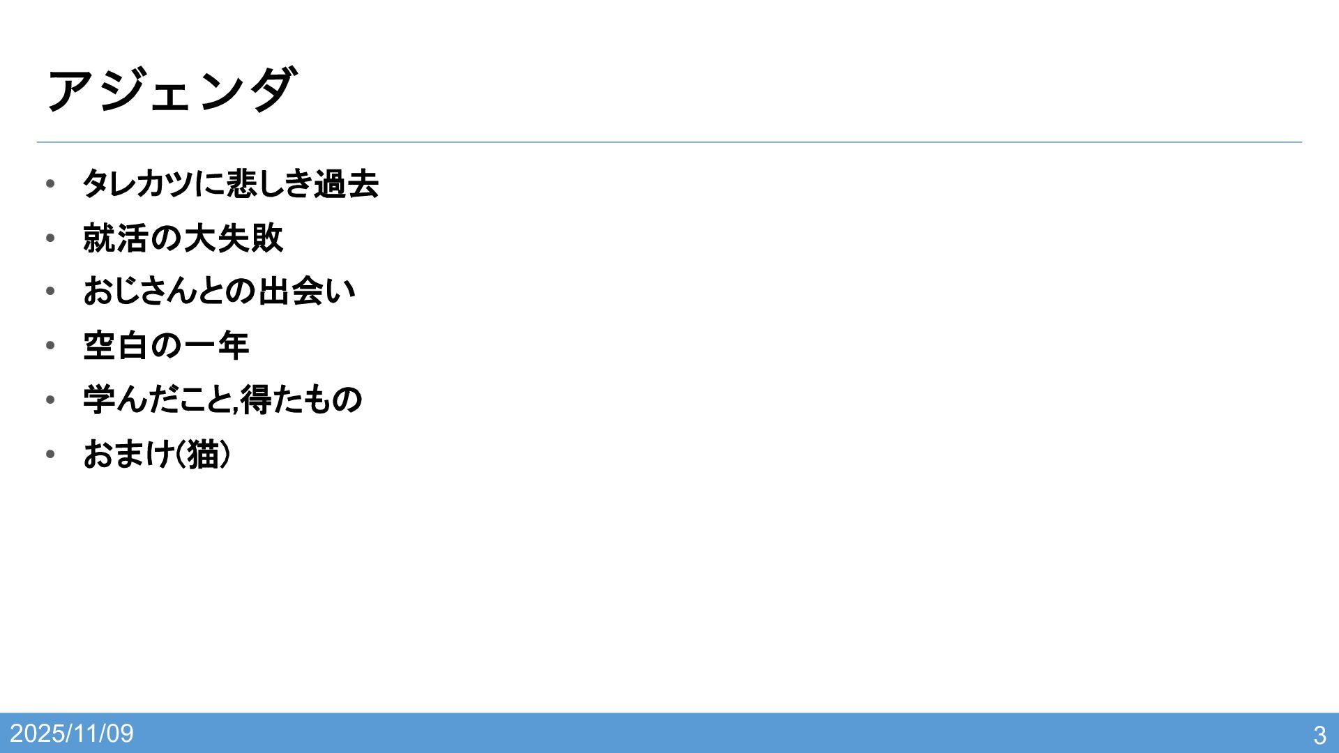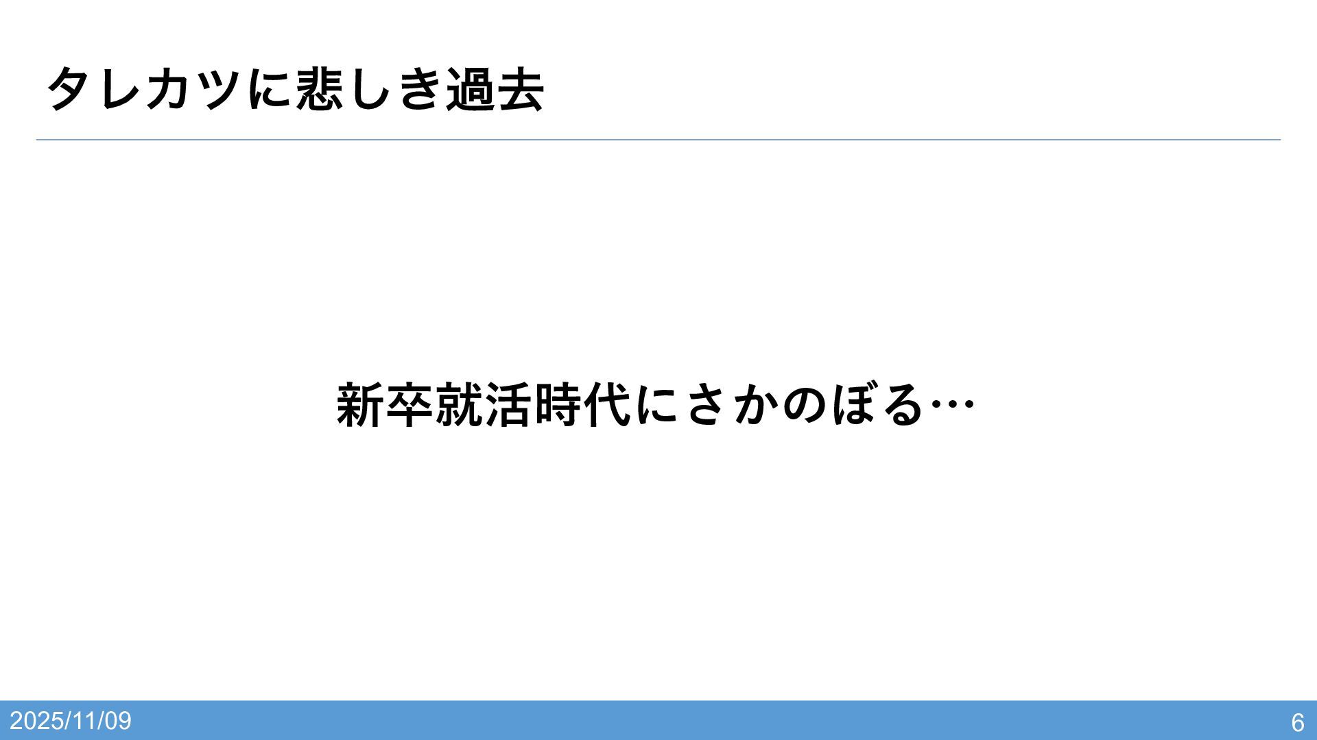2025/11/09 • タレカツに悲しき過去 • 就活の大失敗 • おじさんとの出会い • 空白の一年 •