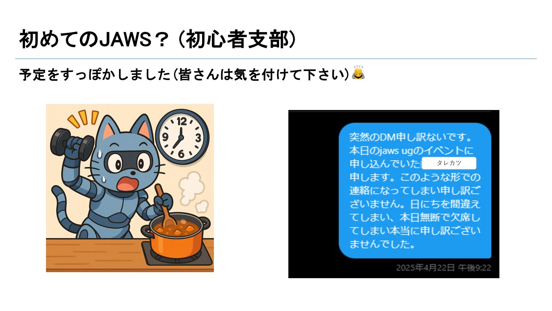 初めてのJAWS? (初心者支部) 予定をすっぽかしました(皆さんは気を付けて下さい)🙇 タレカツ