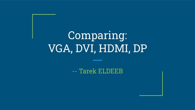 ◦ Analog is backward compatible with VGA ◦ Digital has 3 differential (TDMS) + 1 Clk ▪ Clock is allowed to vary 25 → 165 MHz • Maximum data rate (including 8b/10b overhead) is 4.95 Gbit/s @ 165 MHz • UXGA (1600 × 1200) @ 60 Hz • I2C for EDID block: ◦ The display's identification ◦ color characteristics (such as gamma value), ◦ and table of supported video modes (resolutions)