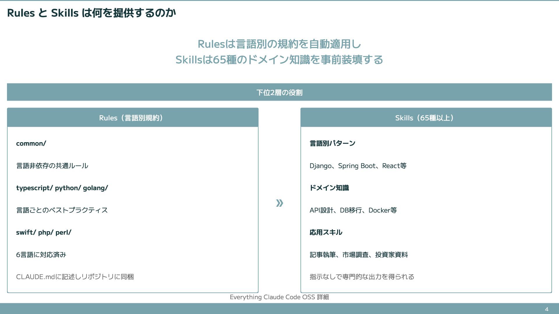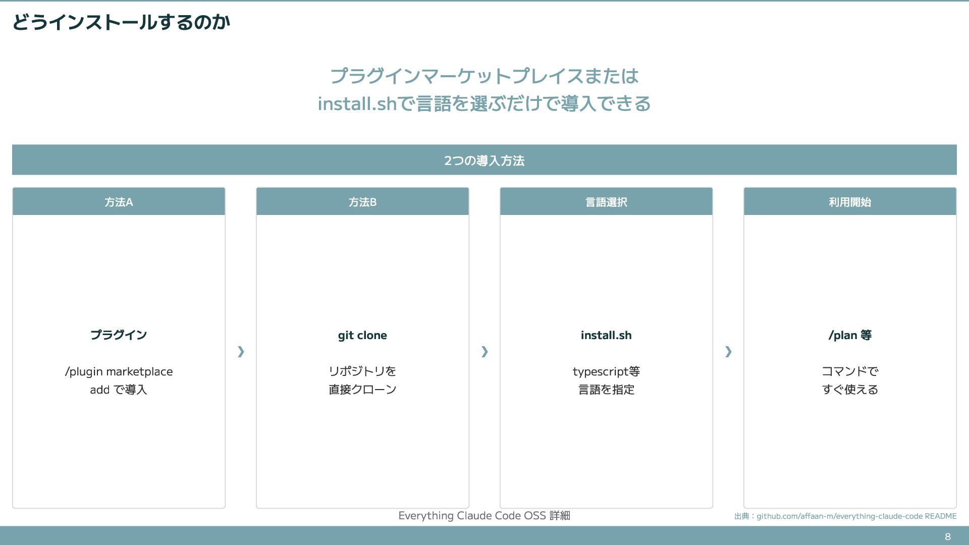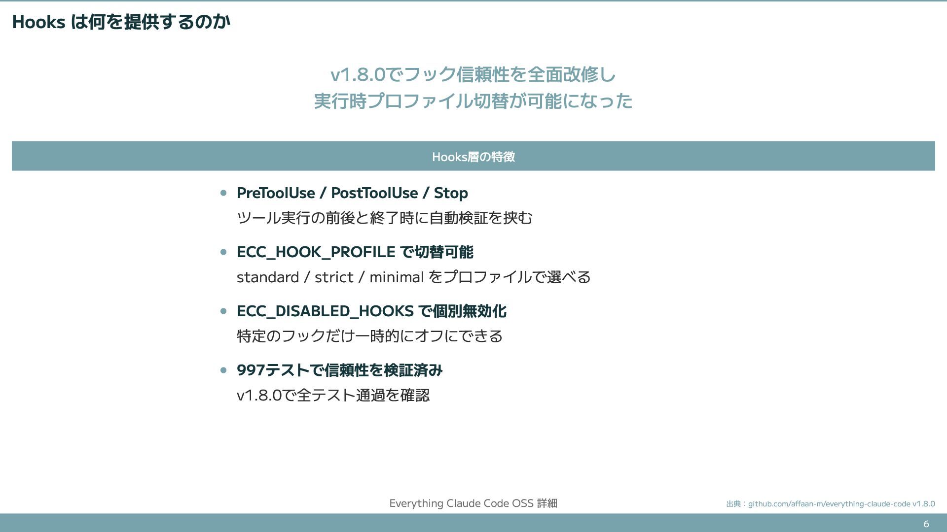 76.6Kスターを集めたエージェントハーネスOSSの詳細解説。知識層(Rules/Skills)、実行層(Agents/Commands)、品質層(Hooks)の具体的な中身と、install.shによる導入方法を紹介する。