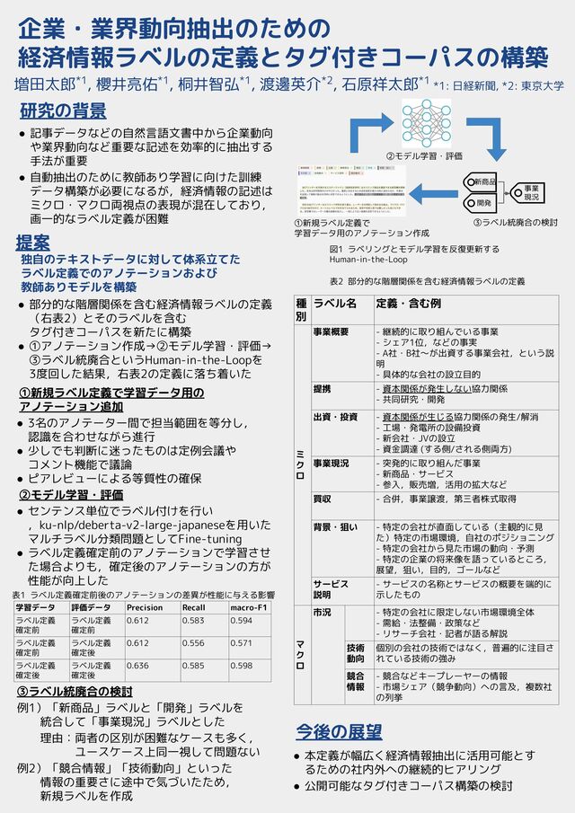 企業・業界動向抽出のための経済情報ラベルの定義とタグ付きコーパスの構築 / yans2023-poster-s3-p21