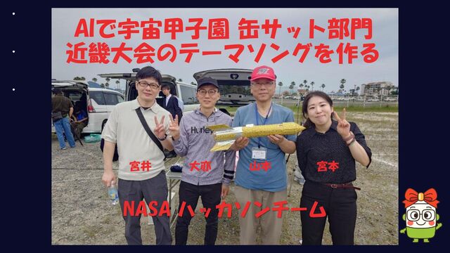 AIで宇宙甲子園 缶サット部門 近畿大会のテーマソングを作る 宮井 大亦 山本 宮本 NASA ハッカソンチーム