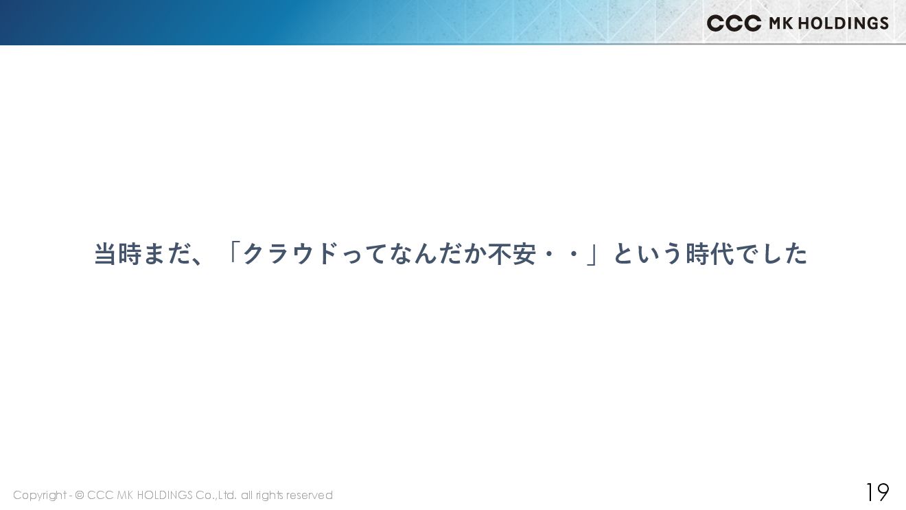 19 当時まだ、「クラウドってなんだか不安・・」という時代でした
