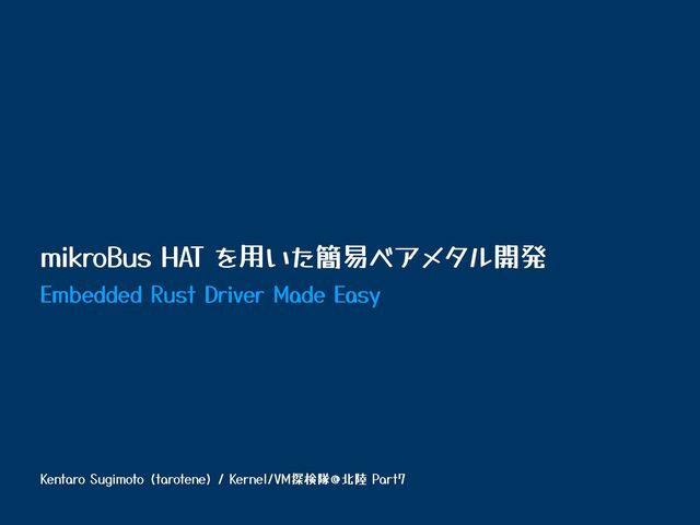 Kentaro Sugimoto (tarotene) / Kernel/VM探検隊@北陸 Part7 mikroBus HAT を用いた簡易ベアメタル開発 Embedded