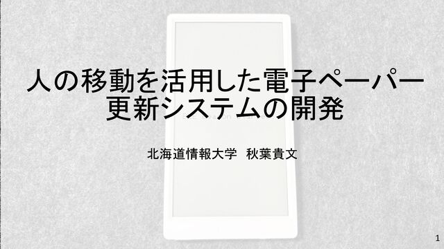 人の移動を活用した電子ペーパー 更新システムの開発 北海道情報大学 秋葉貴文 1