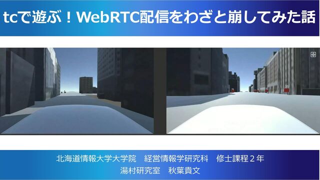 tcで遊ぶ!WebRTC配信をわざと崩してみた話 北海道情報大学大学院 経営情報学研究科 修士課程2年 湯村研究室 秋葉貴文