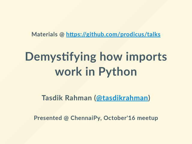 Code Snippets: https://github.com/prodicus/talks/tree/master/accepted/chennaipy/october?ref=speakerdeck
