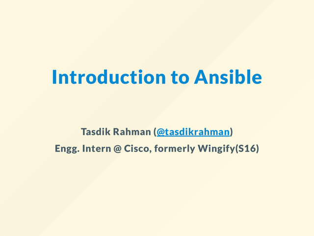 Material and code: https://github.com/prodicus/talks/tree/master/accepted/bangpypers/intro-to-ansible-april-meetup