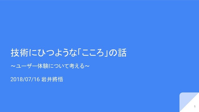 技術にひつような「こころ」の話 ~ユーザー体験について考える~ 2018/07/16 岩井將悟 1