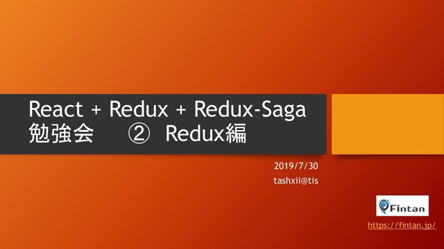 React + Redux + Redux-Saga 勉強会 ② Redux編 2019/7/30 tashxii@tis