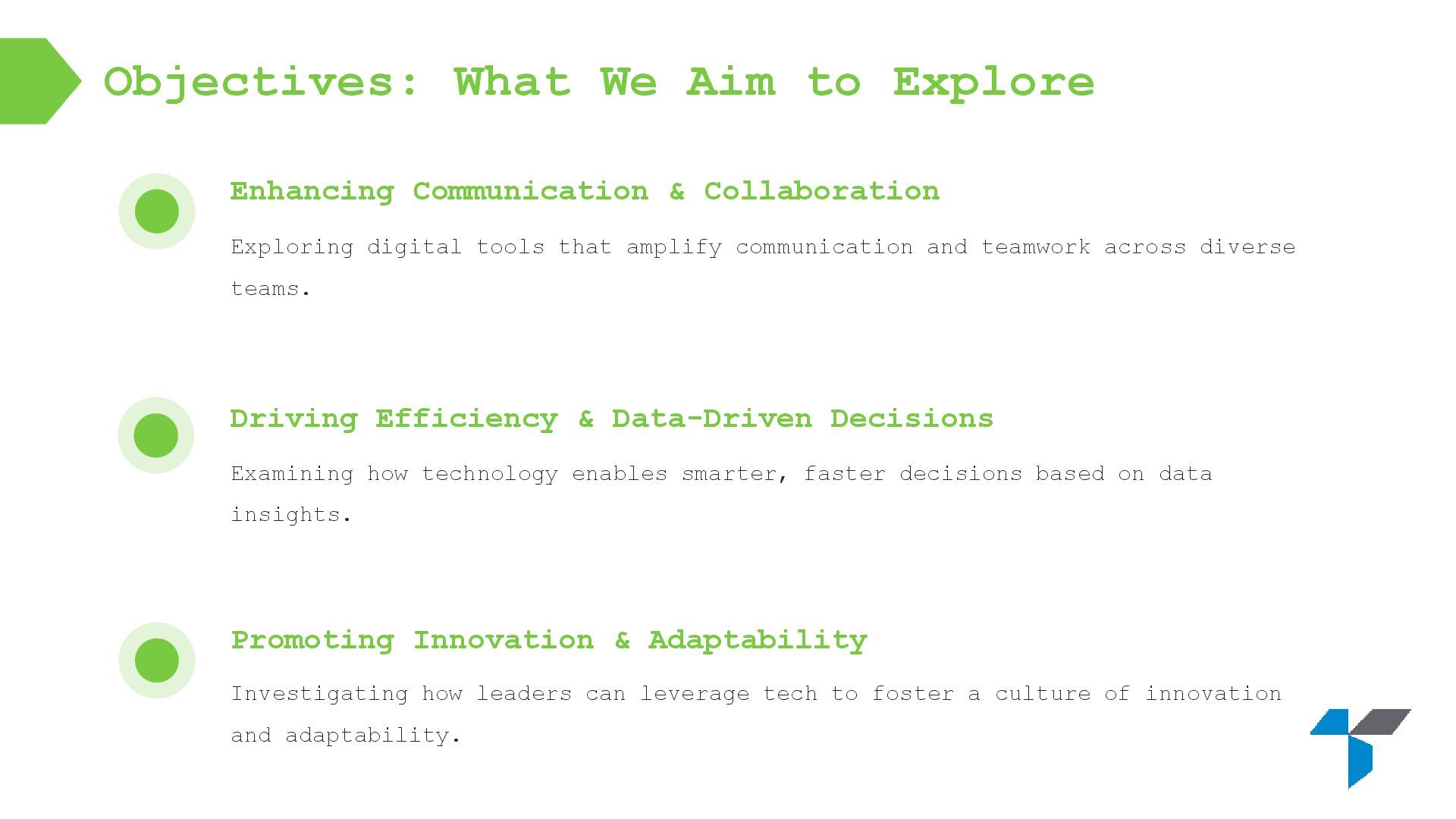 Modern leadership thrives on leveraging technology to enhance communication, automate processes, and enable data-driven decision-making. This presentation highlights how AI, analytics, and digital platforms boost efficiency, collaboration, and strategic insight. It also emphasizes building a culture of innovation, continuous learning, and employee empowerment. Leaders who embrace emerging technologies create agile, resilient organizations positioned for long-term success.