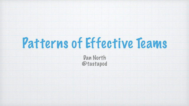 In this talk Dan describes a number of patterns of behaviour that he's identified working with some great teams, beyond the basics of co-location, stand-ups and pair rotation. You'll gain a new appreciation for old techniques like code reviews, and even working in silos won't seem so bad!