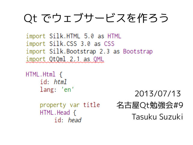 Qt でウェブサービスを作ろう 2013/07/13 名古屋Qt勉強会#9 Tasuku Suzuki