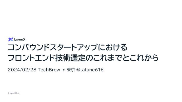 © LayerX Inc. コンパウンドスタートアップにおける フロントエンド技術選定のこれまでとこれから 2024/02/28 TechBrew in 東京 @tatane616