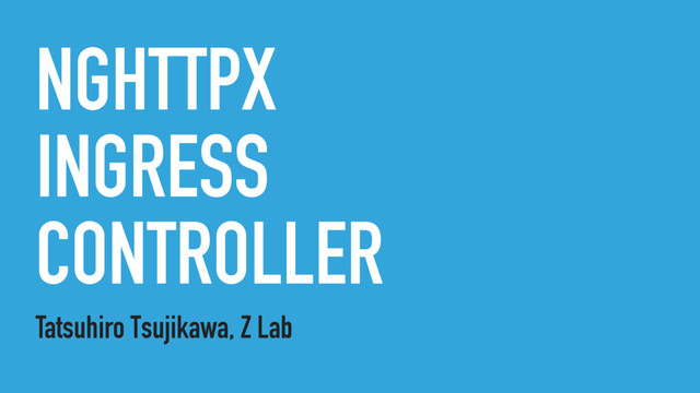 sourced by Z Lab, MIT licensed ▸ https://github.com/zlabjp/nghttpx-ingress-lb ▸ Development has started by forking NGINX ingress controller ▸ HTTP/2 ▸ TLS ▸ and …