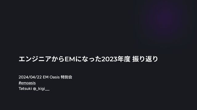エンジニアからEMになった2023年度 振り返り 2024/04/22 EM Oasis 特別会 #emoasis Tatsuki @_kigi__