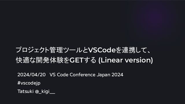 プロジェクト管理ツールとVSCodeを連携して、 快適な開発体験をGETする (Linear version) - VS Code Conference Japan 2024