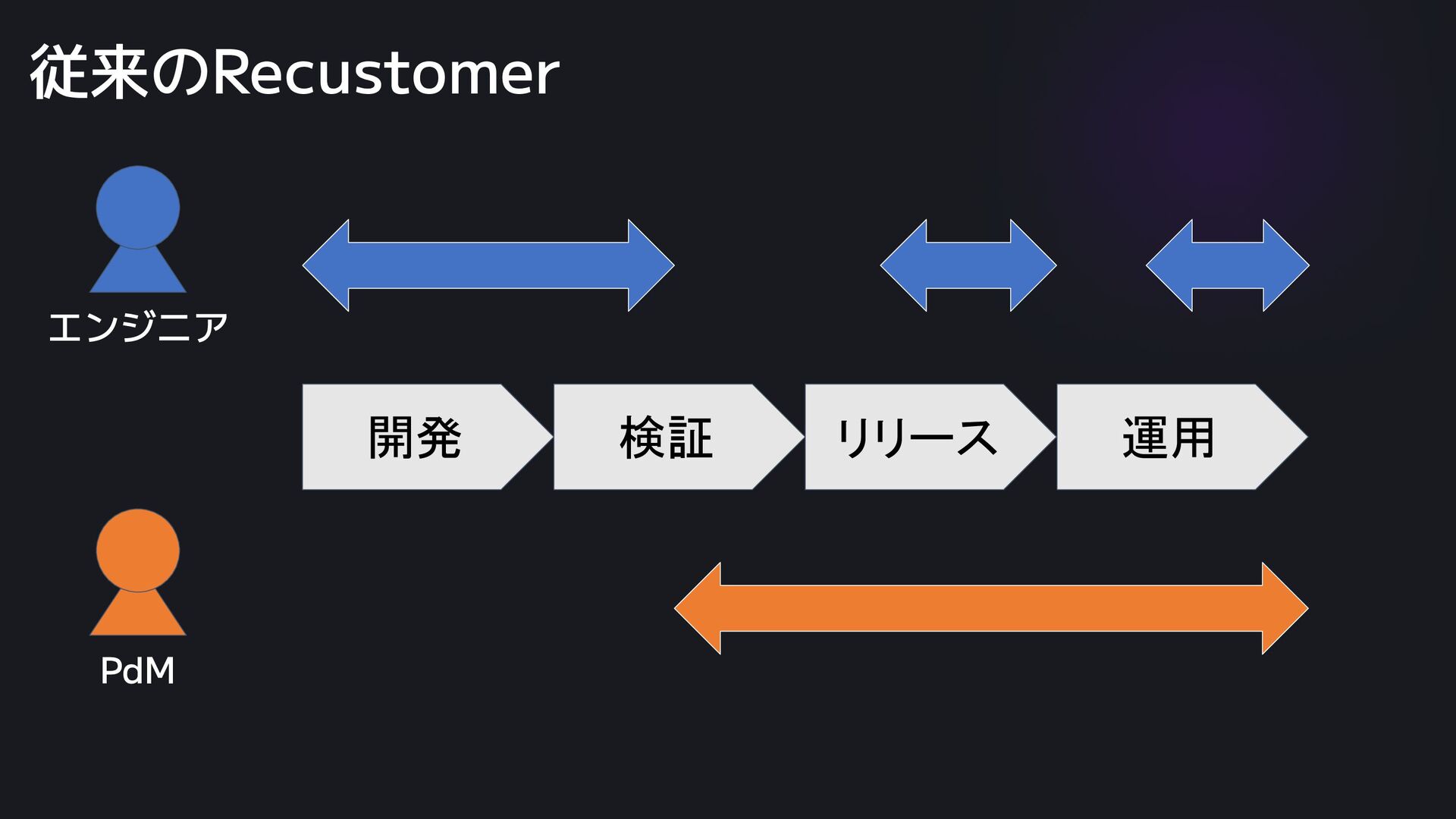 従来のRecustomer エンジニア 開発 検証 リリース 運用 PdM