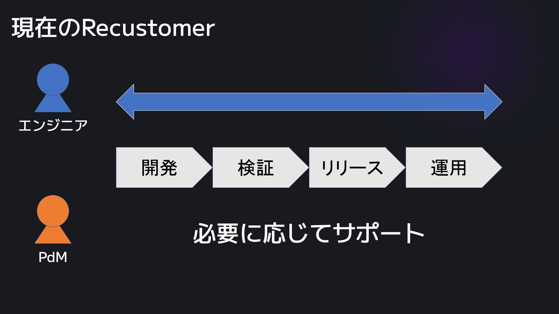 現在のRecustomer エンジニア 開発 検証 リリース 運用 PdM 必要に応じてサポート