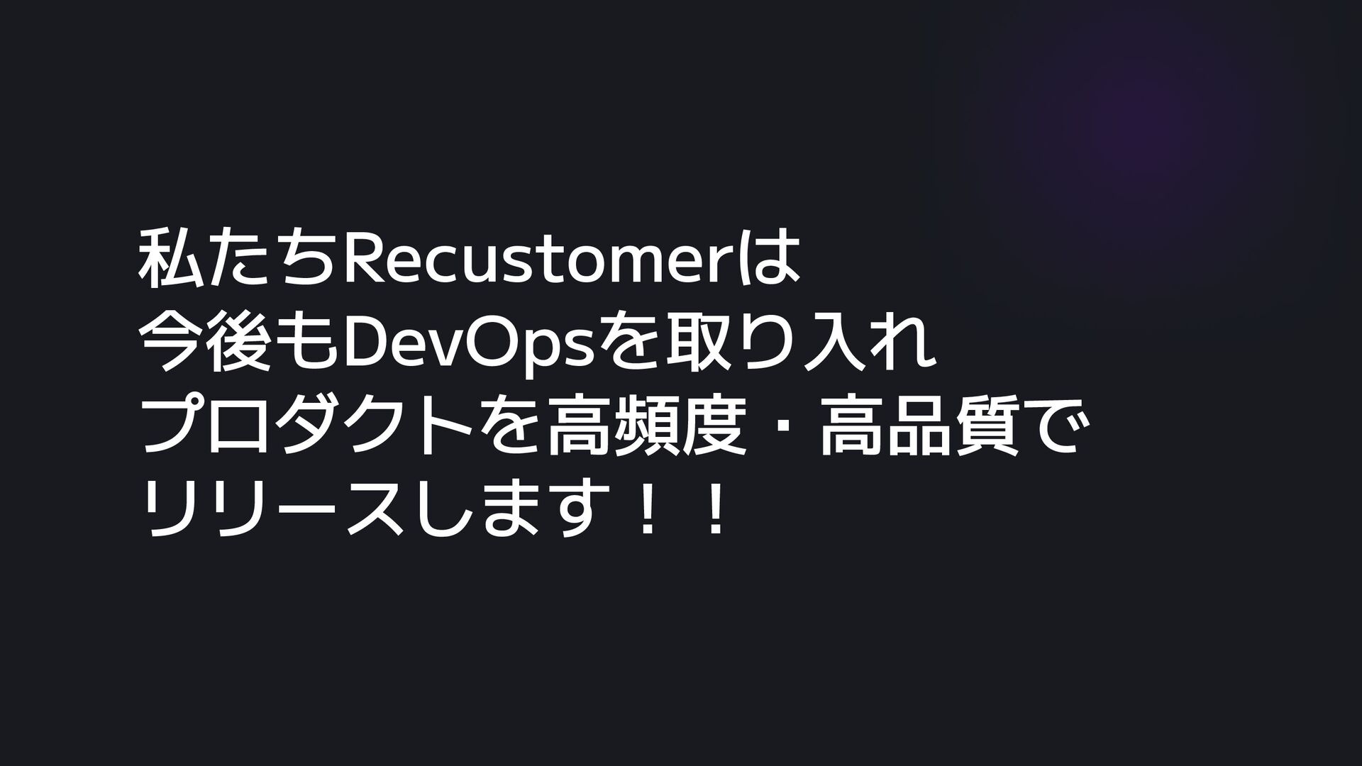 私たちRecustomerは 今後もDevOpsを取り入れ プロダクトを高頻度・高品質で リリースします!!