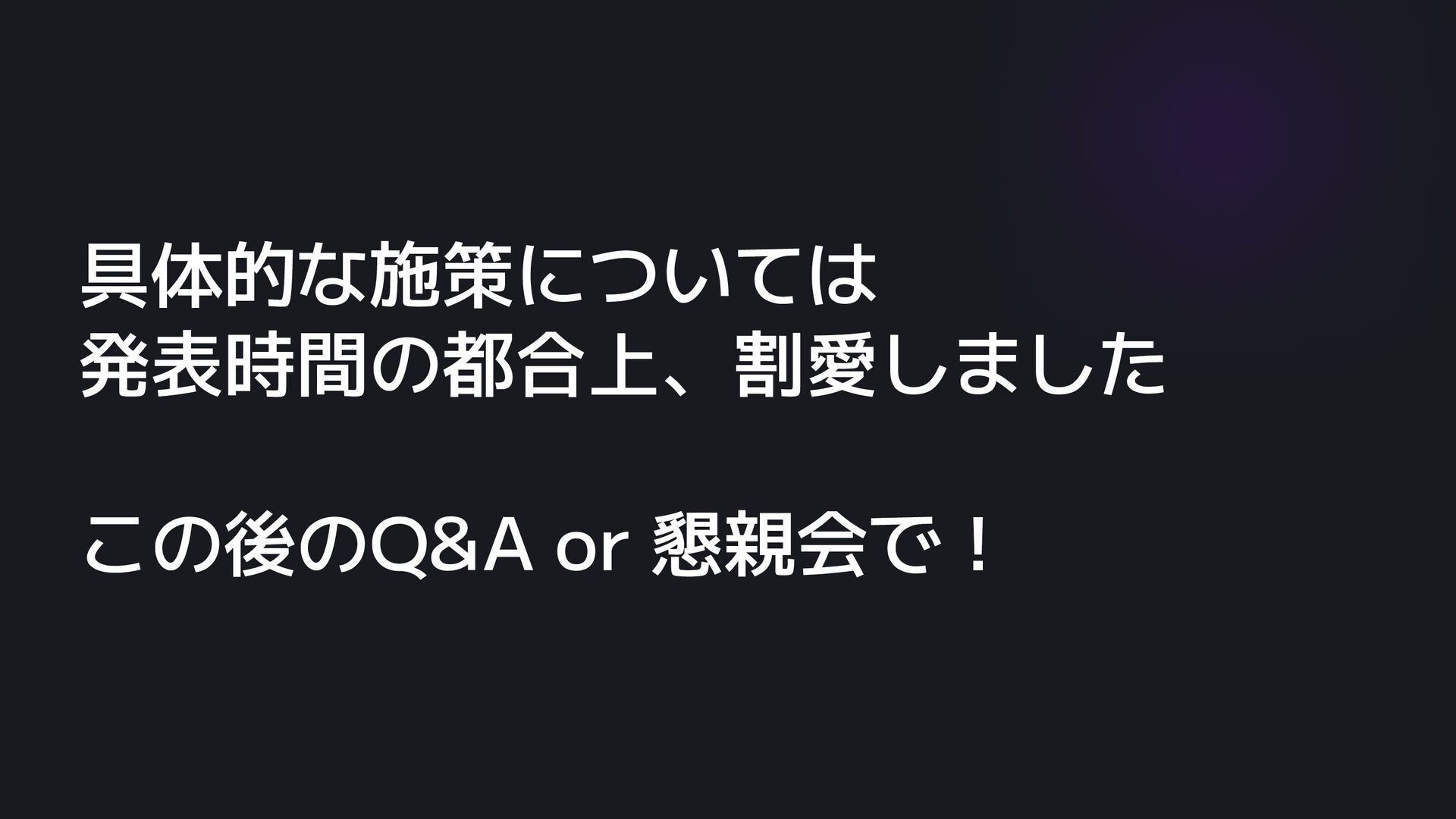 具体的な施策については 発表時間の都合上、割愛しました この後のQ&A or 懇親会で!