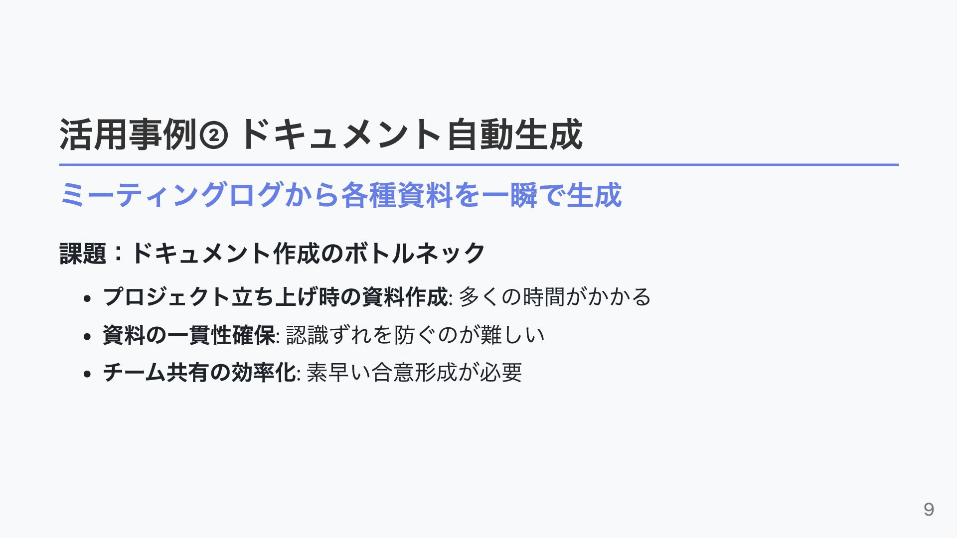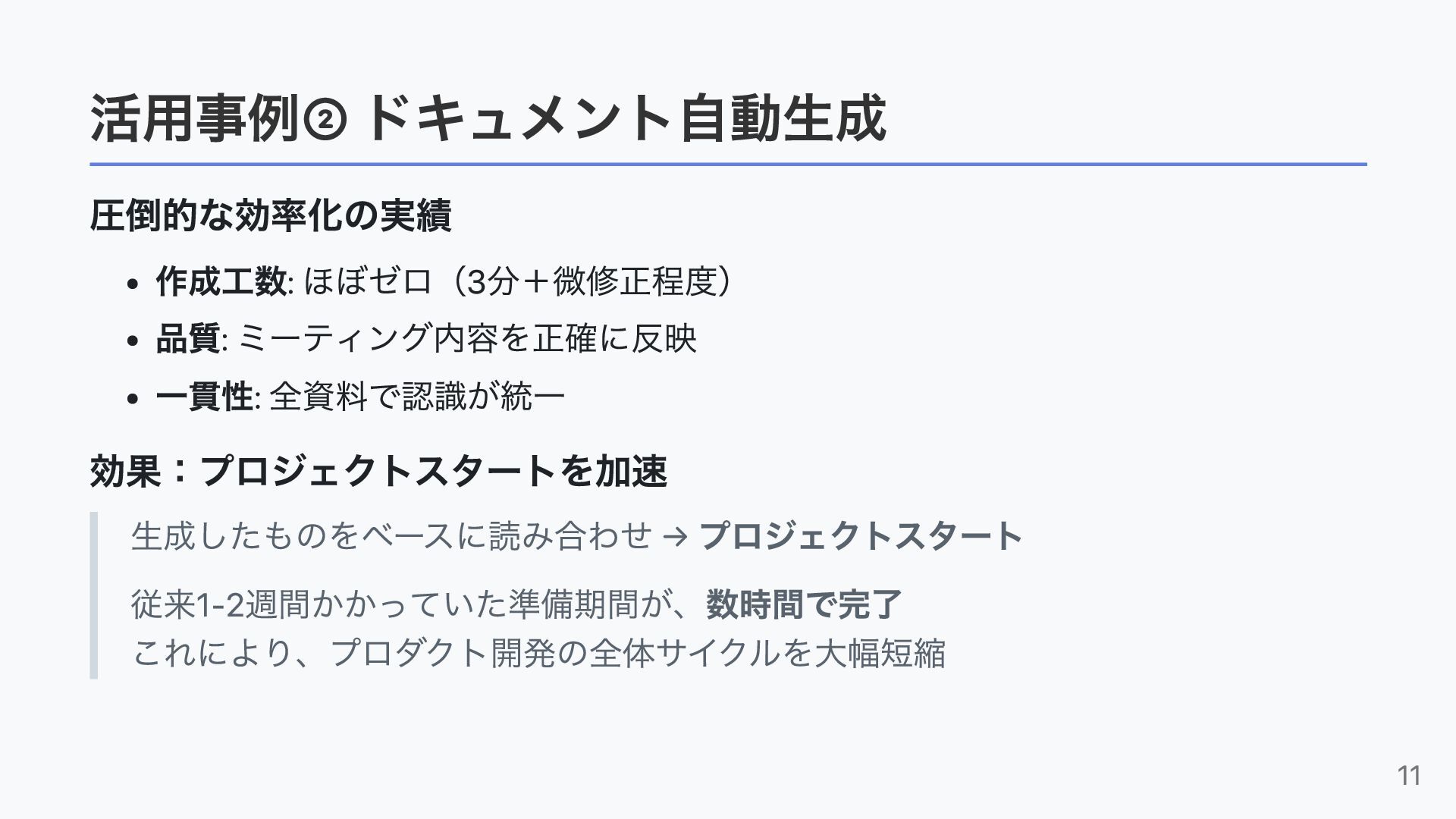・ドキュメント作成や検討プロセスをどう短縮しているか