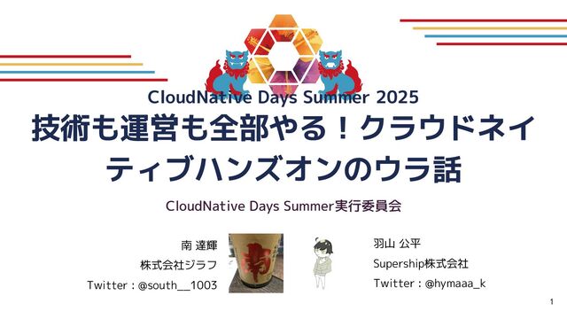 CloudNative Days Summer 2025 技術も運営も全部やる!クラウドネイ ティブハンズオンのウラ話 CloudNative Days Summer実行委員会 南