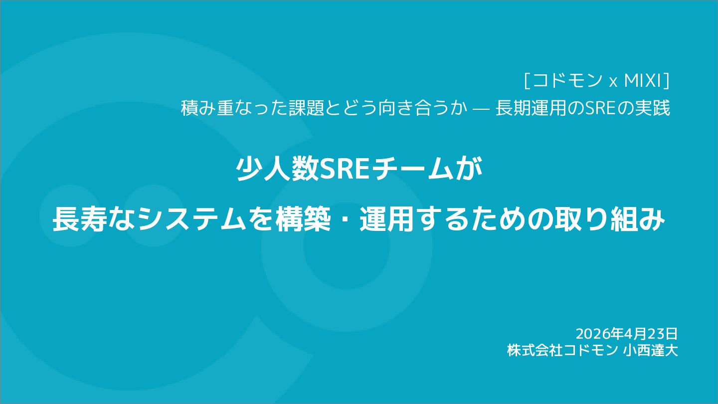[コドモン x MIXI] 積み重なった課題とどう向き合うか — 長期運用のSREの実践 の発表資料です。