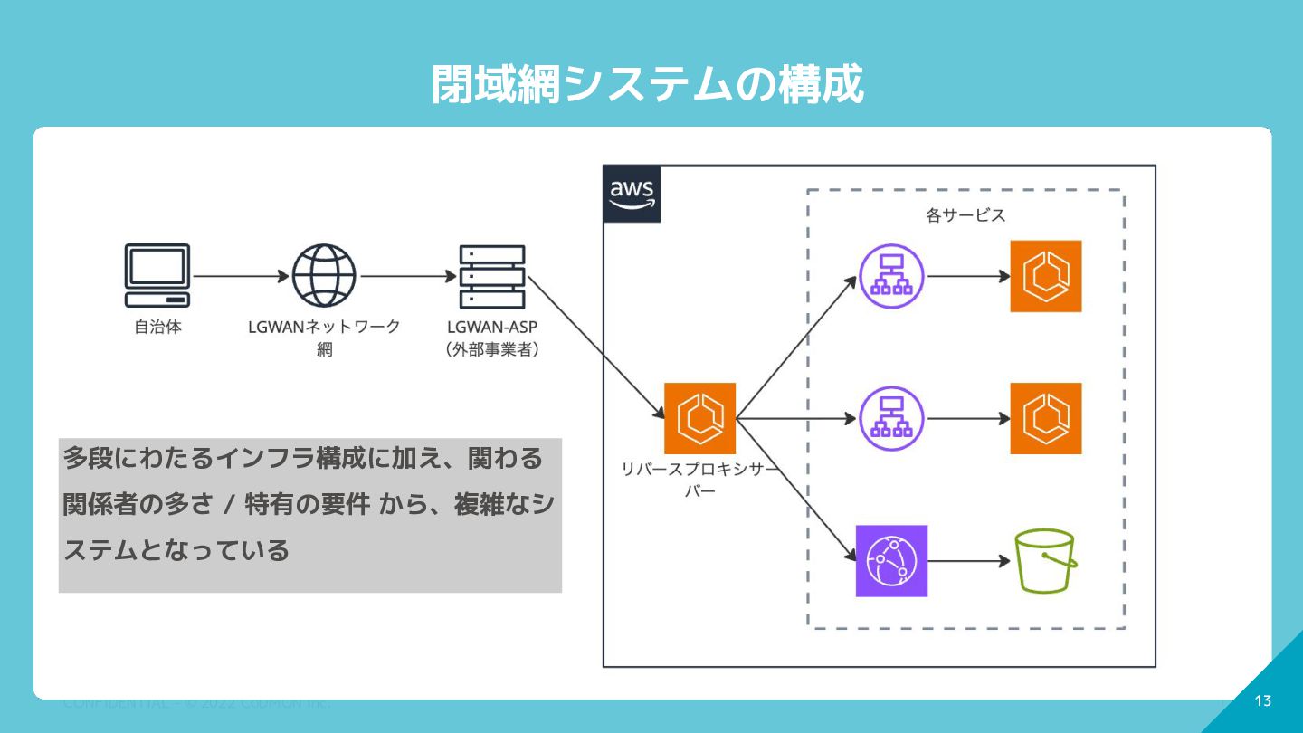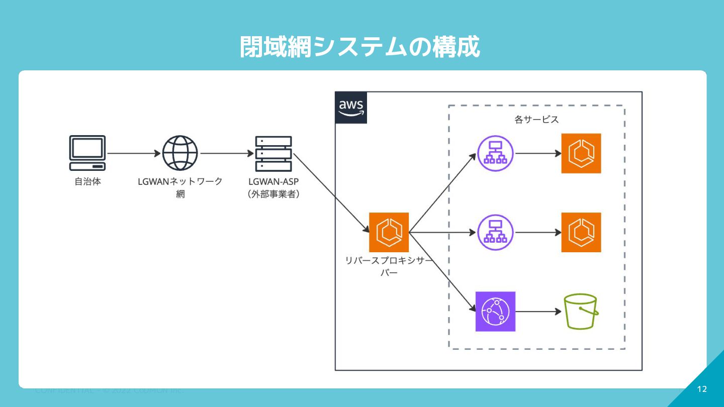 12 CONFIDENTIAL - © 2022 CoDMON Inc. 12 閉域網システムの構成