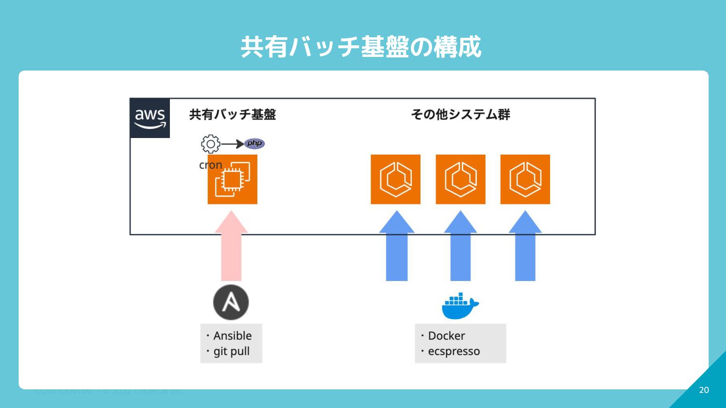 20 CONFIDENTIAL - © 2022 CoDMON Inc. 20 共有バッチ基盤の構成
