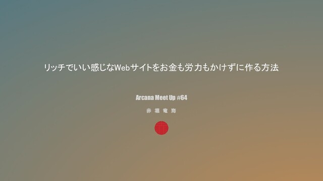 リッチでいい感じなWebサイトをお金も労力もかけずに作る方法 Arcana Meet Up #64 赤 堀 竜 海