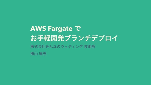 AWS Fargate Ͱ ͓खܰ։ൃϒϥϯνσϓϩΠ גࣜձࣾΈΜͳͷΣσΟϯά ٕज़෦ ԣࢁ ୡஉ