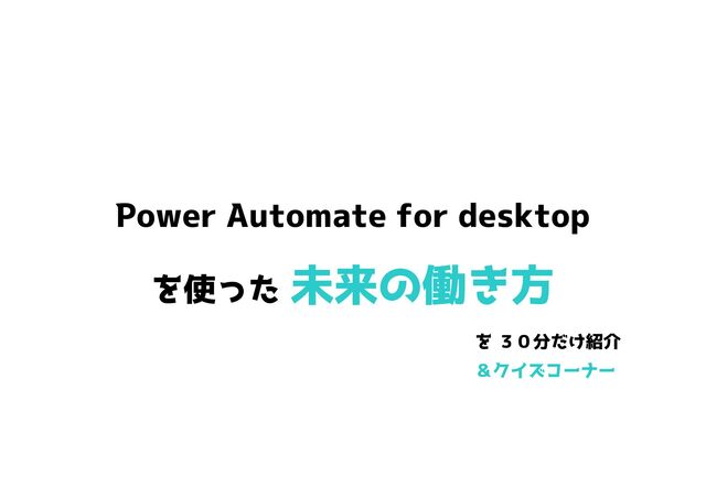 Power Automate for desktop を使った 未来の働き方 を 30分だけ紹介 &クイズコーナー