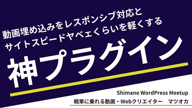 Shimane WordPress Meetupでお話させていただいた「動画埋め込みをレスポンシブ対応と、サイトスピードヤベェくらいを軽くする神プラグイン」のスライドです。