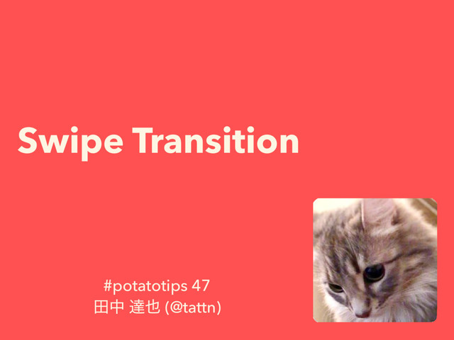 withDuration: transitionDuration(using: transitionContext), delay: 0, options: .curveLinear, animations: { to.view.transform = .identity from.view.transform = CGAffineTransform(translationX: to.view.frame.width, y: 0) }, completion: { _ in from.view.transform = .identity transitionContext.completeTransition( !transitionContext.transitionWasCancelled ) }) ભҠޙͷviewʹύϥϥοΫεޮՌΛ͚ͭͭɺ