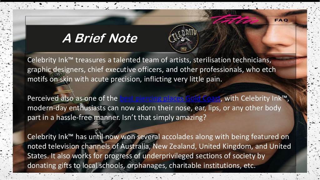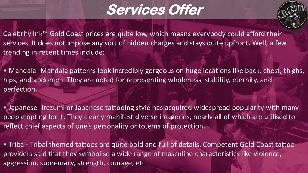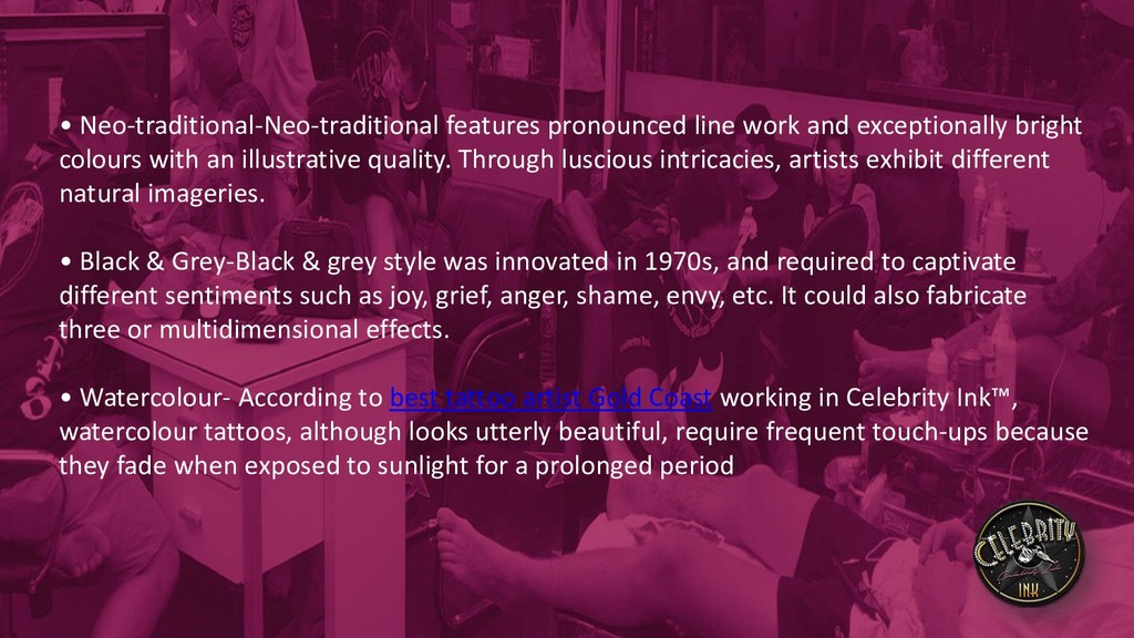 The foundation of Celebrity Ink™ is based on trust. They have more than hundreds of experienced and skilled artist in their group. They always take their job seriously and never miss the opportunity of improvement as their motto is providing the clients with the highest quality of tattoo. Website : https://celebrityinktattoosouthport.com