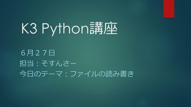 K3 Python講座 6月27日 担当:そすんさー 今日のテーマ:ファイルの読み書き