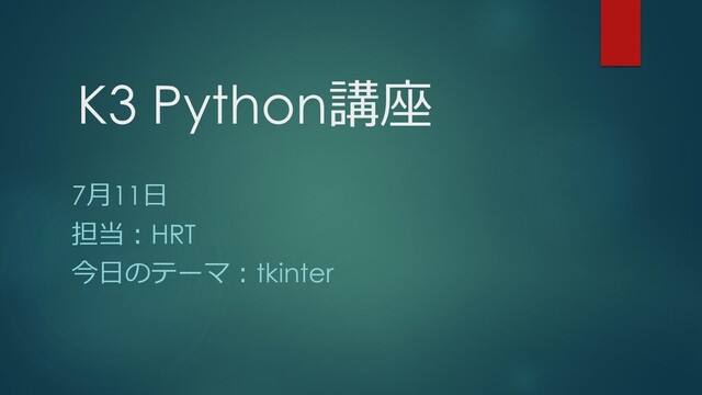 K3 Python講座 7月11日 担当:HRT 今日のテーマ:tkinter