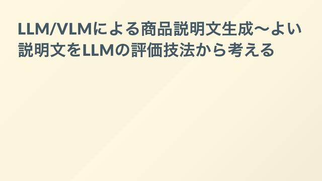 LLM/VLM による商品説明文生成〜よい 説明文をLLM の評価技法から考える