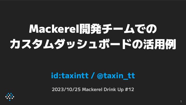 Mackerel開発チームでの カスタムダッシュボードの活用例 id:taxintt / @taxin_tt 2023/10/25 Mackerel Drink Up #12