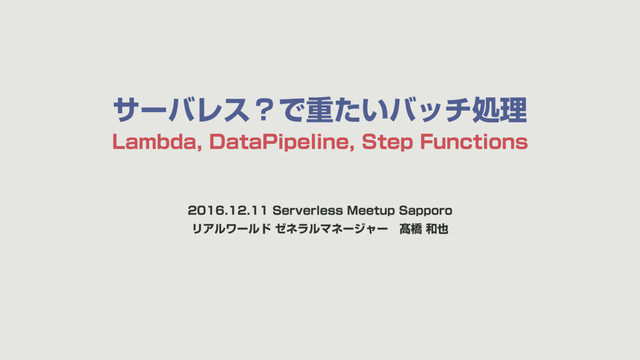 -BNCEB %BUB1JQFMJOF 4UFQ'VODUJPOT αʔόϨεʁͰॏ͍ͨόονॲཧ ϦΞϧϫʔϧυθωϥϧϚωʔδϟʔɹ∁ڮ 4FSWFSMFTT.FFUVQ4BQQPSP