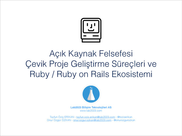 ve ne degildir? • Açık kaynaklı projelerin gelişimi ve topluluğun katkısı • Birlikte neler geliştirebilirsiniz ve açık kaynaklı projelere nasıl katkı sağlarsınız? • Bizim firmamizda acik kaynak sayesinde neler basardik ve ne fayda sagladik