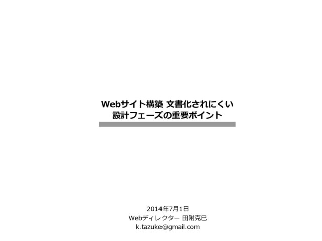 Webサイト構築 文書化されにくい 設計フェーズの重要ポイント 2014年7月1日 Webディレクター 田附克巳