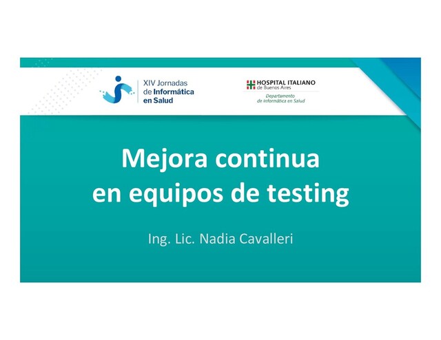 Charla ofrecida en oportunidad de la XIV Jornadas de Informática en Salud. (Argentina/Buenos Aires/CABA)