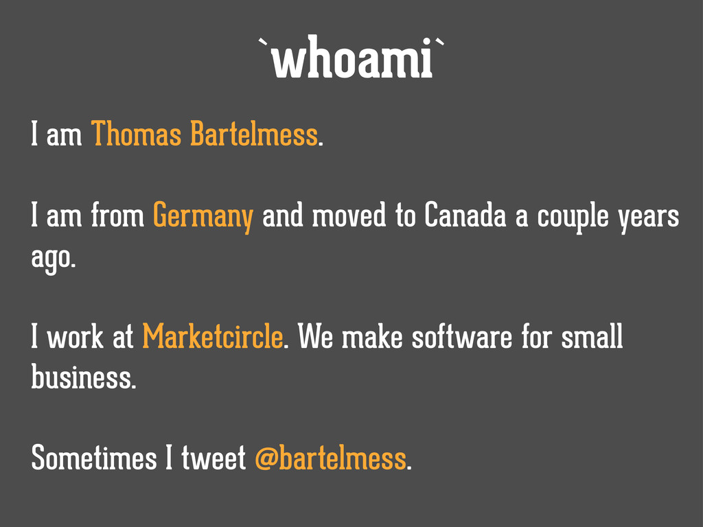 `whoami` I am Thomas Bartelmess. I am from Germany and