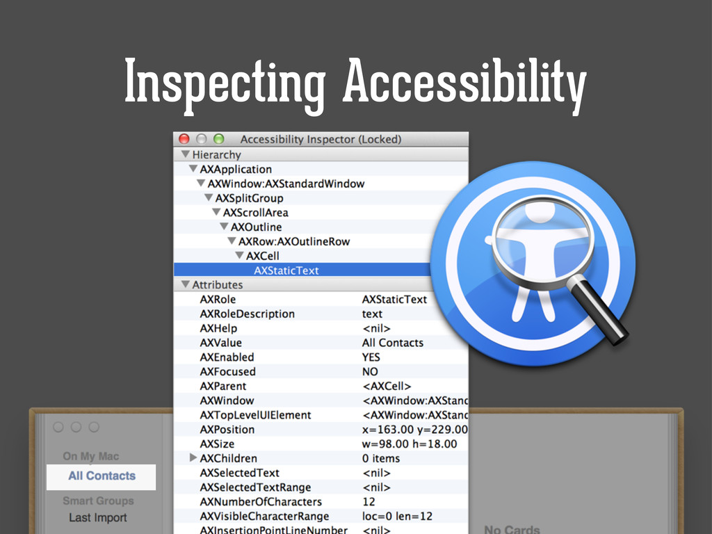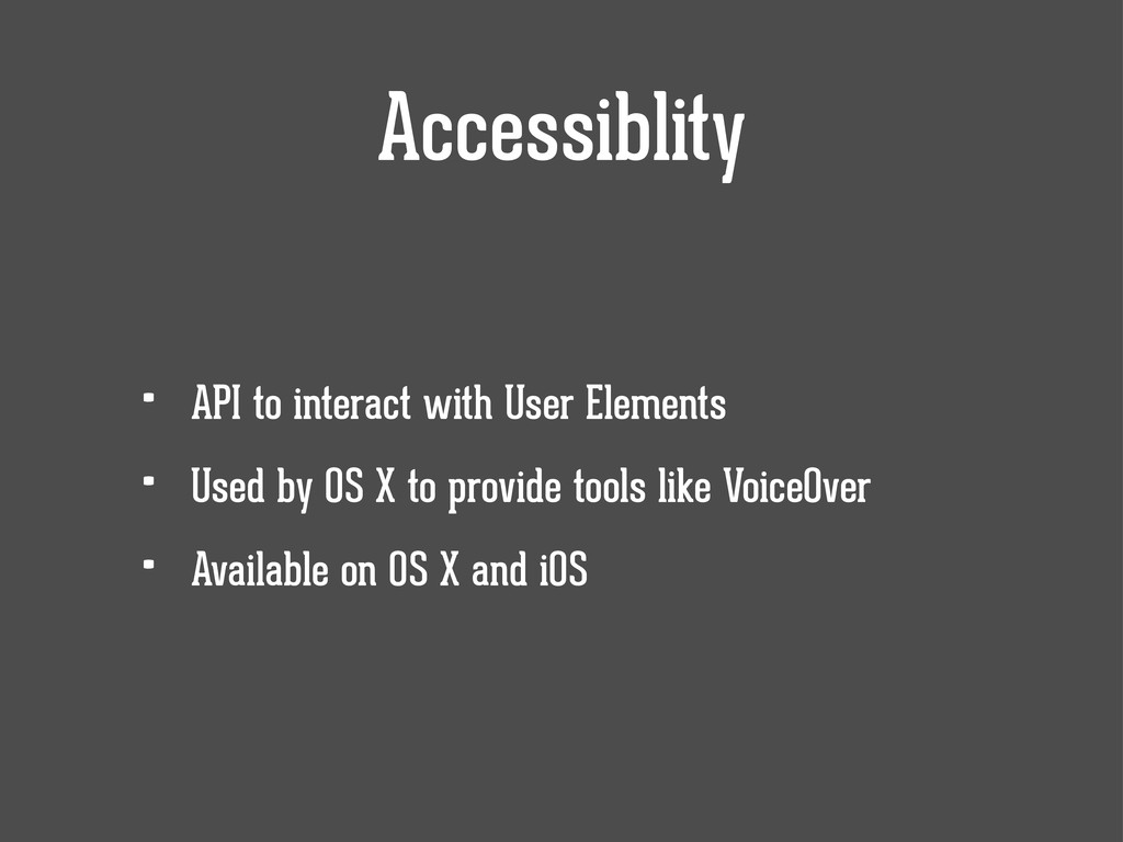 by OS X to provide tools like VoiceOver • Available on OS X and iOS