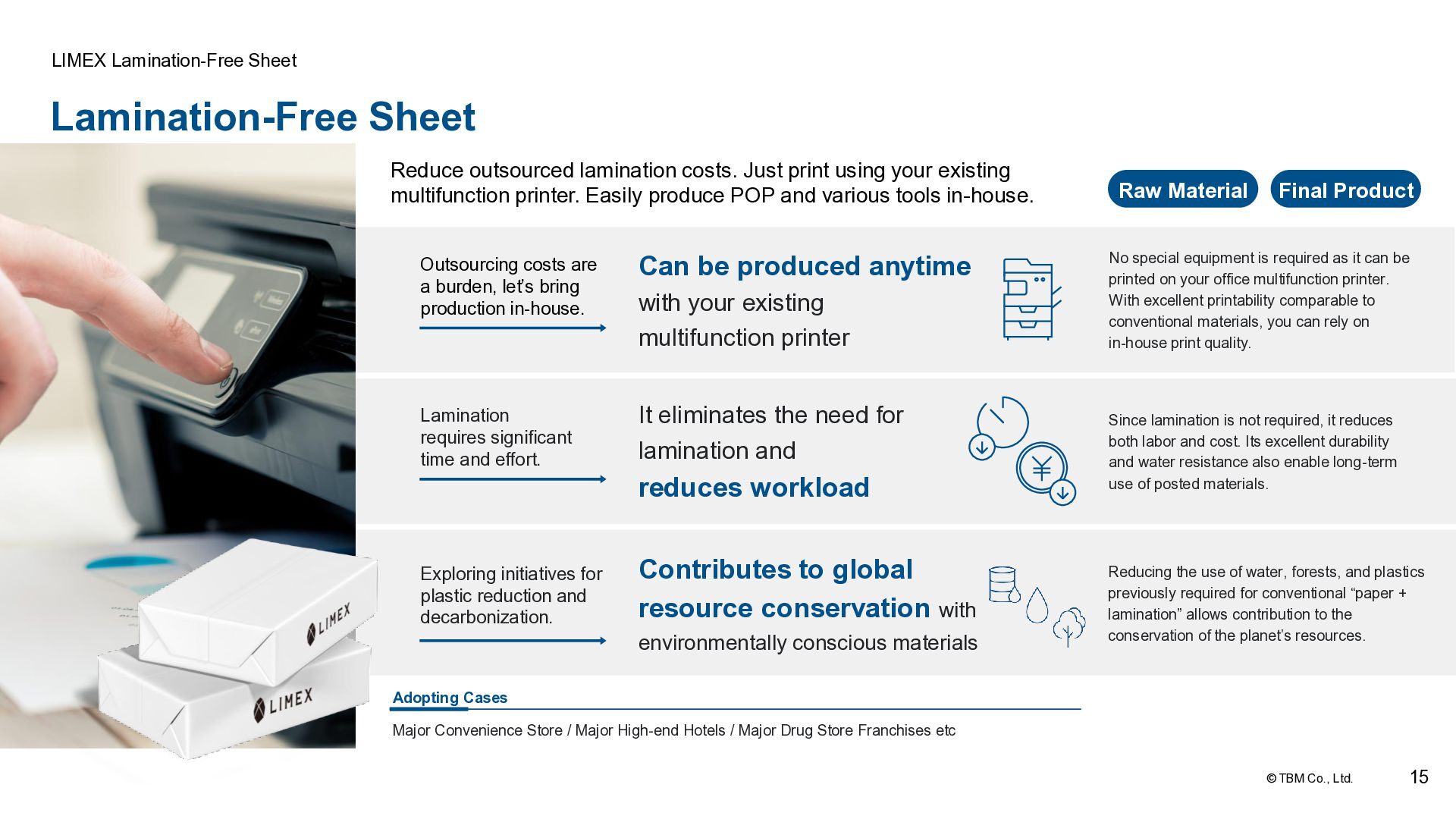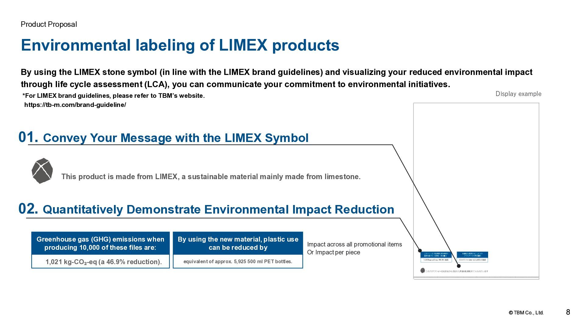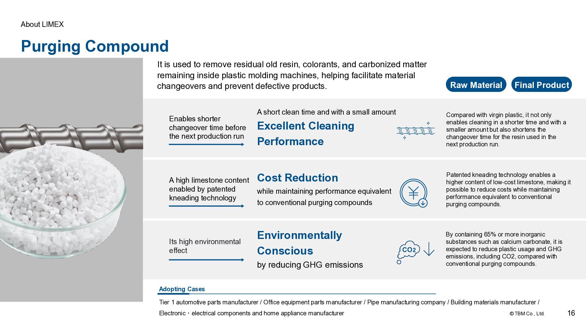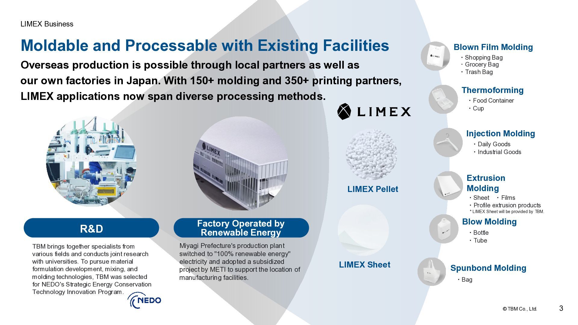 for food packaging that incorporates LIMEX, an environmentally considerate material made primarily from limestone. Compared with conventional sealant films, it enables the design of packaging materials with superior environmental performance. About LIMEX Possible to manufacture packaging with improved tear-open performance After lamination, it improves tear-openability and allows smooth opening. The LLDPE type offers excellent easy-cut performance, while the low-temperature CPP type can additionally provide consecutive-cut performance. Enables smooth opening Eco-conscious through the replacement of petroleum-based plastics Reduction in greenhouse gas emissions, including CO2 Compared with conventional sealant films made from petroleum-based plastics, it can reduce the use of petroleum-based plastics as well as greenhouse gas emissions, including CO2, across the entire product life cycle, from raw material production to incineration. Compliant with the Food Sanitation Act Complies with the "Specifications and Standards for Foods, Food Additives, etc." under the Food Sanitation Act (Ministry of Health and Welfare Notification No. 370 of 1959). Compliant with standards, making it safe for use with food Raw Material Final Product Adopting Cases Ishii Foods Co., Ltd., etc.