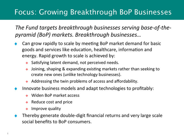 per 1000 popula4on; 130th out of 134 countries ♦ Highly concentrated vehicle ownership ♦ Auto rickshaws banned from Addis ♦ Poor, unmetered taxi service ♦ Licensed garbage collectors: broom and push cart ♦ Proprietary vehicle designs: taxis, garbage collectors, mobile kiosks, ambulances, delivery vehicles ♦ Simple assembly in country ♦ 33% cheaper than exis4ng taxis; 4 – 5x beter fuel efficiency ♦ Genera4ng income, asset ownership & credit history among BoP ♦ > 40% projected IRR Addis Ababa Taxi
